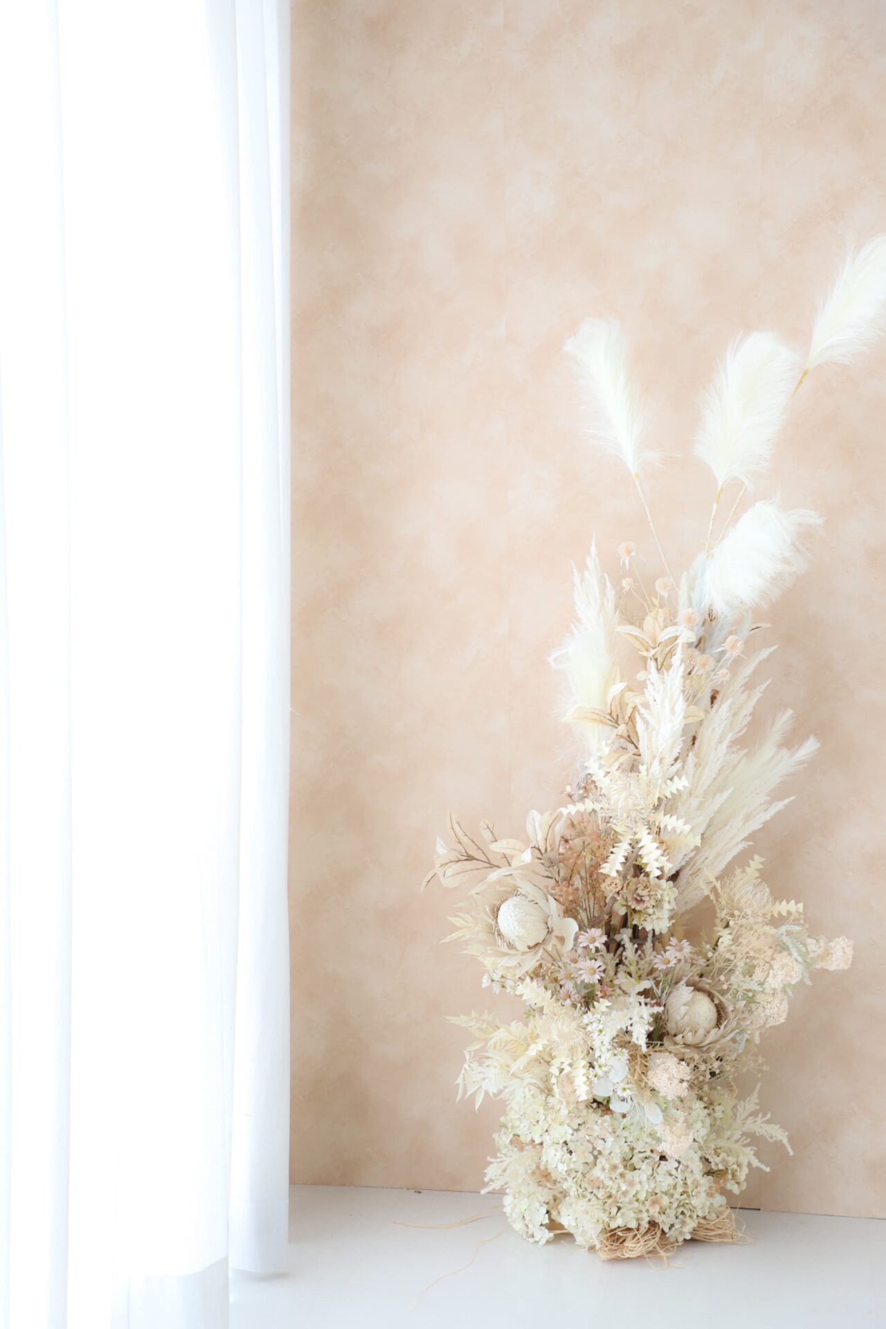 お振袖のお着付け・へアセットに1時間程度、メイクに30分程度、撮影に30分程度が目安です。ドレスも着る場合には衣装チェンジ、撮影に+40分程度。